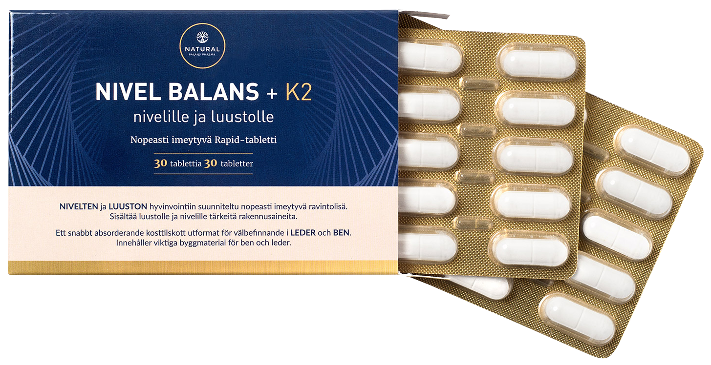 Kokeile tuotetta nyt puoleen hintaan 4 viikon ajan. Luusto & Nivel Balans edistää nivelten ja luuston hyvinvointia.